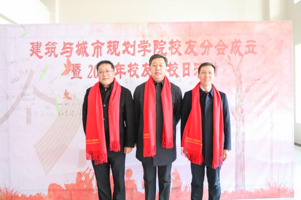 校友分会成立仪式上,学校校友总会办公室负责人宣读了学校关于同意成立建筑学院校友分会的批复,建筑学院负责人宣读了首届校友分会理事会名单。马军党副校长为建筑学院首届校友会会长、副会长等颁发聘书、授会旗。建筑学院校友分会会长蔺鹏臻代表首届校友分会讲话。