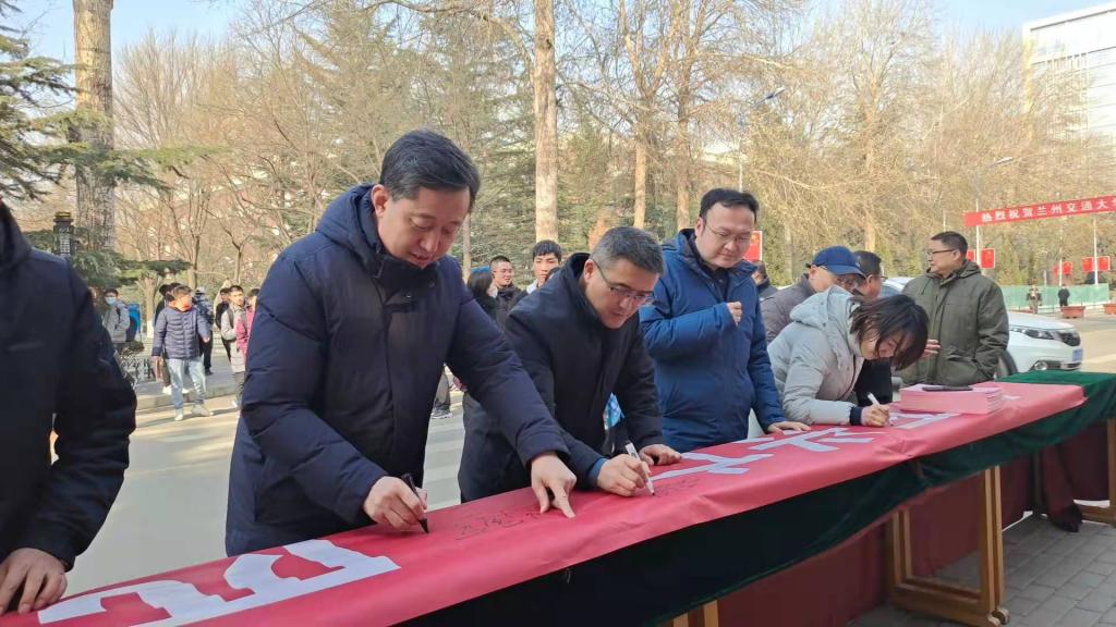 12月31日中午,学校在正门主干道举行2021年大学生征兵工作签名仪式,副校长马军党出席签名仪式。学生工作部(处)、党委人民武装部负责人、各学院(部)学生工作分管领导、辅导员代表、学生代表、国防教育团学员代表等共200余人参加了活动。1000余名师生在“天下兴亡、匹夫有责”的红色条幅上签上自己的名字,以此表达对国防建设的强烈支持。活动现场设立了应征入伍政策宣传咨询台,通过悬挂横幅、发放宣传单、现场咨询等方式,向广大学生介绍了大学生应征入伍的基本条件、报名流程、优待政策等相关事宜,并就同学们关心的学费减免、退役复学、转专业、入党、就业、退役大学生研究生专项计划等问题进行了耐心细致的解答。