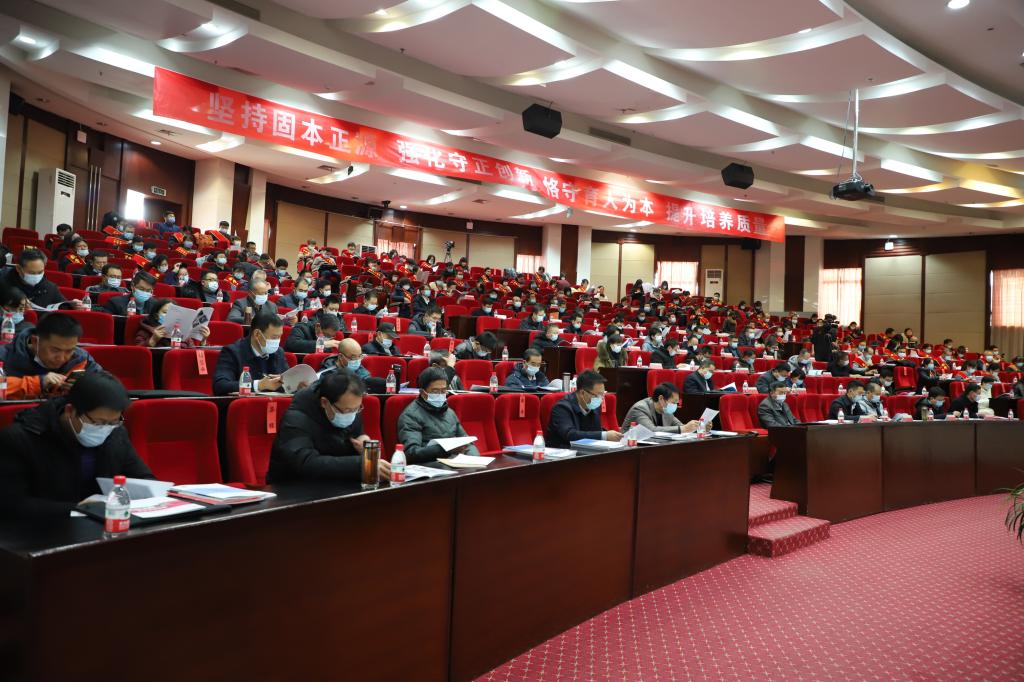 12月30日下午,学校2020年本科教育工作会议在国际会展中心隆重召开。学校领导杨子江、李引珍、陈兴冲、买寿清、马军党、高云庆、省教育厅高教处处长张发旺出席会议。各职能部门负责人,本科教学质量督导委员会代表,各教学单位党委书记、院长、主管教学副院长,获奖集体及个人代表共206人在主会场参加了会议。会议由党委书记杨子江主持。