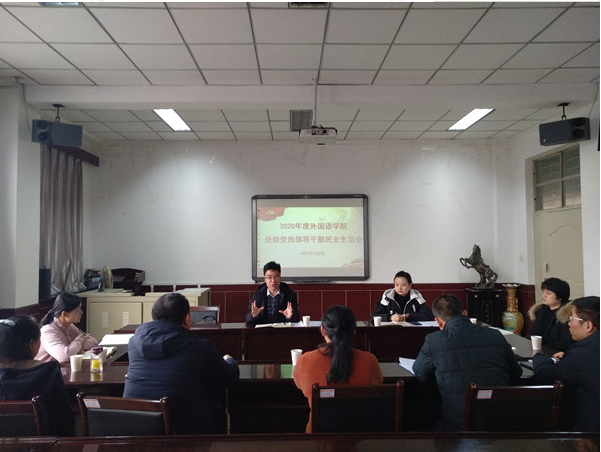 1月9日,外国语学院召开2020年度领导班子民主生活会,学校第十四督导组成员到会指导。会上,学院党委书记汇报了学院领导干部民主生活会会前准备情况,代表学院领导班子作了对照检查,查找了存在的问题、剖析了问题产生的原因,提出了整改方案和措施。领导班子成员结合分管工作与职责,先后进行认真对照检查,检视坦诚、剖析深刻。班子成员开展相互批评,开诚布公,不遮掩,诚恳批评又相互帮助,体现了班子成员共谋学院发展的态度和决心。督导组指出,学院对此次民主生活会高度重视,准备充分,检视剖析问题深刻,批评与自我批评体现了对事业的高度负责,会议取得了预期的效果。