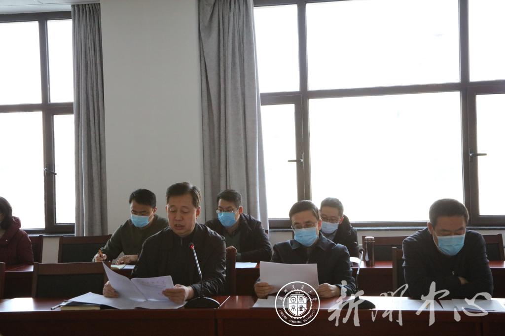 为全面贯彻落实党中央国务院、省委省政府关于做好2021年“两节”期间新冠肺炎疫情防控工作安排部署,严格压实“外防输入、内防反弹”防控责任,有效保障全校师生生命安全和身体健康,1月9日下午,马军党副校长在实验七号楼423会议室主持召开了学校2021年寒假春节期间疫情防控工作会议,校长李引珍出席了会议。