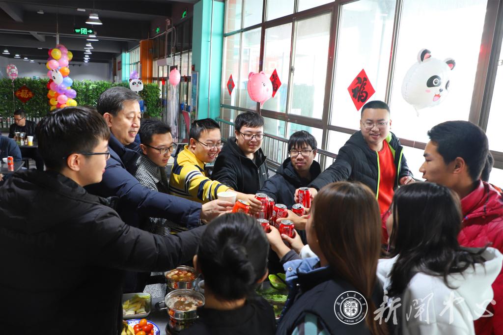 随后,李引珍、马军党一行与同学生们一起吃饺子、涮火锅,热热闹闹、红红火火共度佳节。学校餐厅特别为留校过年的同学们在大年初一至初三提供免费爱心餐食,确保大家的饮食安全和日常生活。