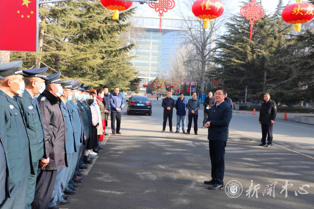 2月11日,正值农历除夕,校长李引珍、副校长马军党代表学校党政,走访慰问了春节期间仍然坚守在工作岗位的一线教职员工和留校的本科生、国际留学生,向他们拜年,为他们带去学校的亲切关怀,并送上节日的美好祝福。