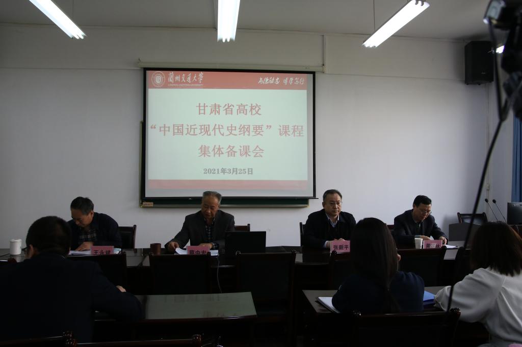 为贯彻落实习近平总书记有关重要讲话精神和中共中央宣传部、教育部《新时代学校思想政治理论课改革创新实施方案》,切实落实《2021年甘肃省“中国近现代史纲要”分教学教学指导委员会工作计划》,根据省教育厅《关于召开2021年春季学期思政理论课集体备课的通知》,为推进甘肃省各高校“中国近现代史纲要”教学工作有序开展,3月25日,甘肃高校“中国近现代史纲要”分教指委集体备课会在兰州交通大学马克思主义学院会议室举行。“纲要”课分教指委主任、兰州大学马克思主义学院院长张新平教授,“纲要”课分教指委副主任、兰州交通大学马克思主义学院院长蔡中宏教授,陕西师范大学历史文化学院黄正林教授,以及全省各高校承担“纲要”教学任务的292名老师通过现场参与和网络备课平台参加了集体备课会。会议由兰州交通大学马克思主义学院院长蔡中宏教授主持。