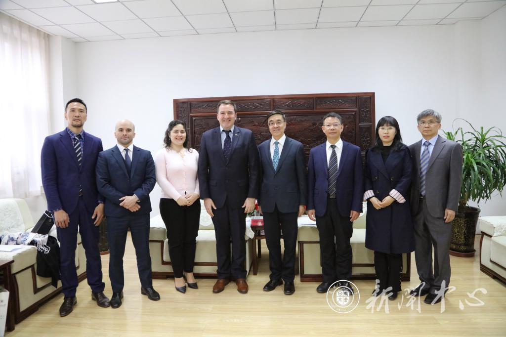 3月30日上午,乌拉圭共和国驻华大使费尔南多·卢格里斯先生(Fernando Lugris)、乌拉圭驻重庆总领事馆代总领事琪娜女士(Agustina Casavalle)、乌拉圭驻重庆总领事馆贸易投资专员布鲁诺先生、乌拉圭驻华大使助理张琪先生一行4人在甘肃省人民政府外事办公室相关负责人陪同下莅临我校访问,李引珍校长在七号实验楼会见了卢格里斯大使一行,陈兴冲副校长和国际交流处相关负责人陪同会见。