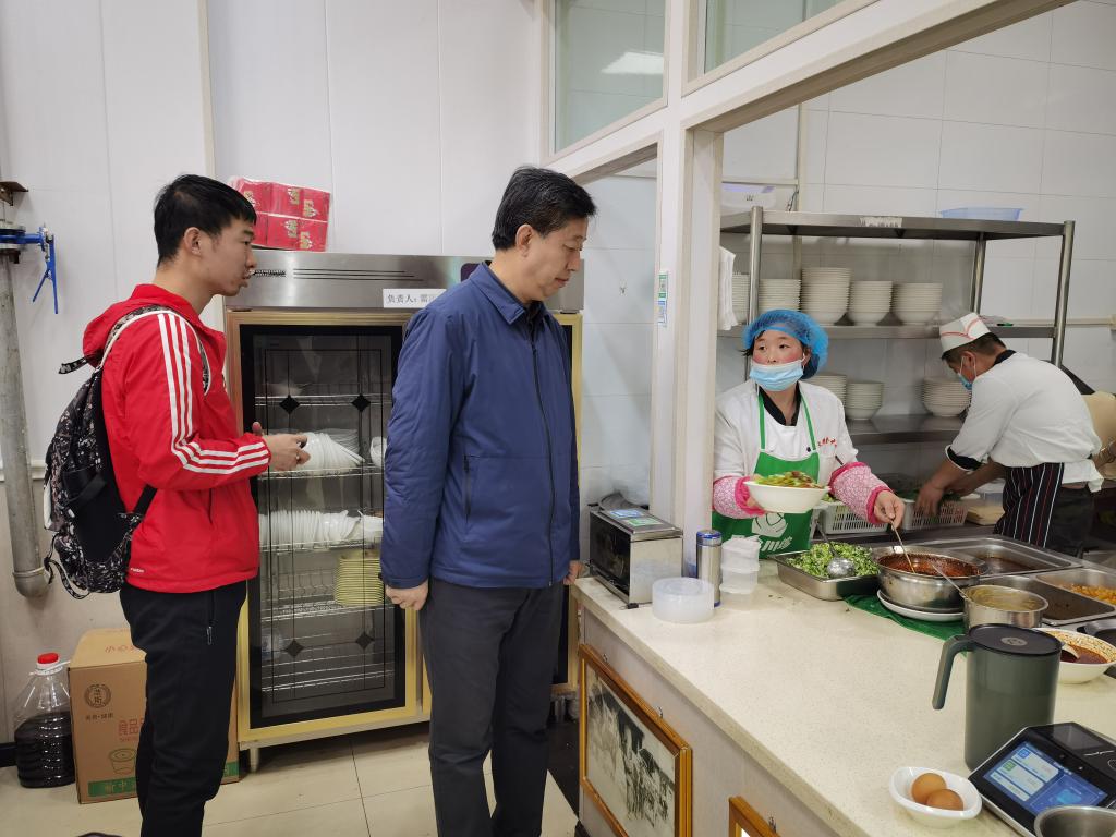 检查组一行还检查了学生公寓、学生食堂、学生浴室等事关学生饮食起居安全的公共区域,包括违规电器使用、宿舍卫生、食堂饭菜价格及质量、公共浴室防偷盗措施等情况,并与相关负责人进行了询问了解,听取了相关单位负责人的工作汇报,针对可能存在的安全隐患,要求相关部门进一步加强预防整改。