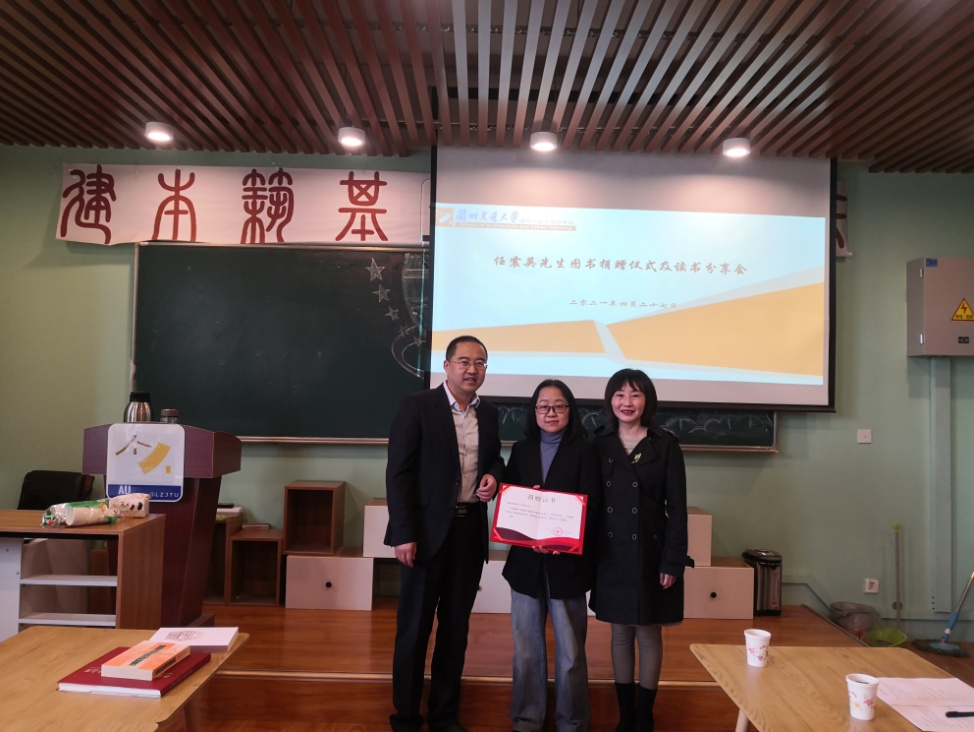 在任震英先生诞辰108周年之际,4月27日下午,我校建筑学院举办了任震英先生图书捐赠仪式及读书分享会活动,任震英先生家属中国雕塑学会理事徐悦翔女士、甘肃省建筑设计研究院有限公司刘任泓高级工程师为学院捐赠了《任震英城市规划与建设论集》、《任震英左保国仿古建筑作品集》、《永远的怀念》等书籍共190余册。本次活动在我校建筑与城市规划学院見歸苑举行,建筑与城市规划学院院相关负责人、教师代表等30多名师生共同参与了此次活动。