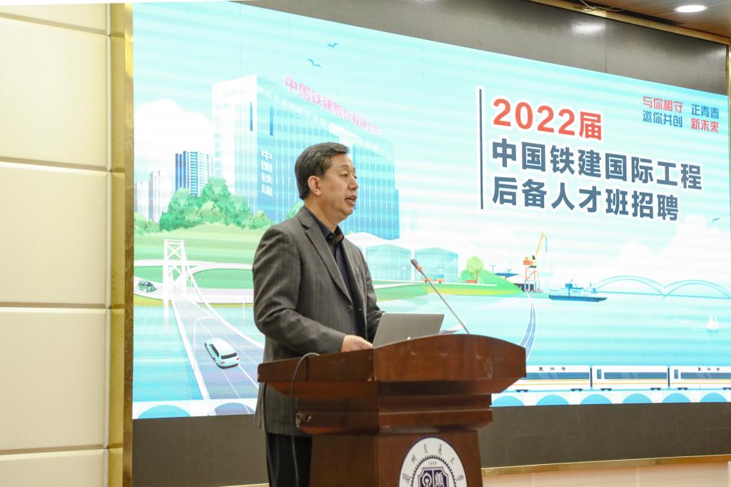 5月8日晚,中国铁建股份有限公司——兰州交通大学国际工程后备人才班专场招聘宣讲会在我校二教报告厅召开。中国铁建股份有限公司党委组织部(人力资源处)人才处处长王谐、我校副校长马军党、中国铁建旗下21家子公司的47位招聘代表出席,招生就业处、各学院(部)就业工作负责人参加了宣讲会。