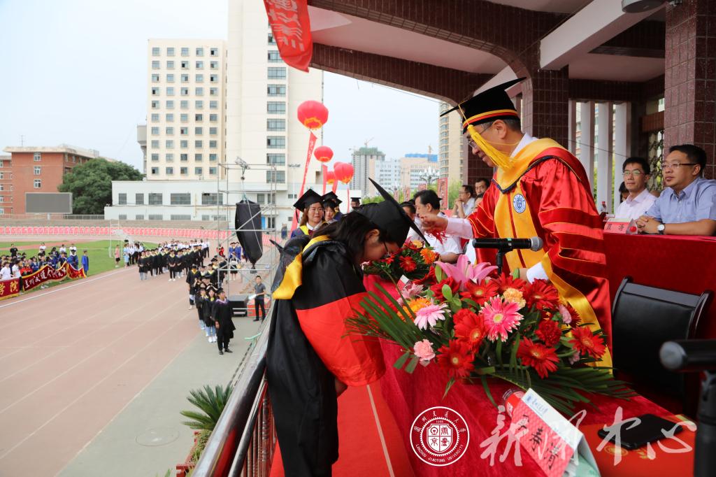 毕业典礼最后,马军党副校长嘱托大家:希望同学们勇挑历史使命,坚定前进信心,立大志、明大德、成大才、担大任,用勤劳的双手和创新的才干,书写绚烂多彩的人生篇章。让无悔的青春在为祖国、为民族、为人民、为人类的不懈奋斗中绽放绚丽的花朵。