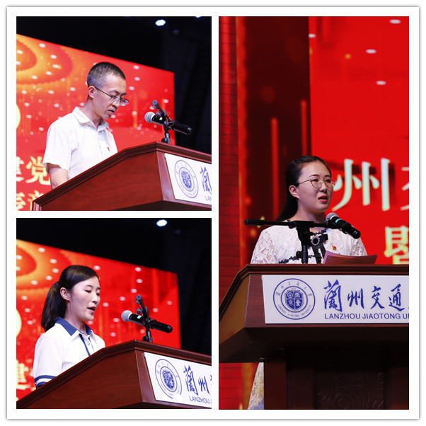 优秀共产党员代表、交通运输学院教授、博士生导师吕斌,新时代甘肃省高等院校优秀党务工作者、机电工程学院党委组织员张燕,全国党建工作样板支部、自动化与电气工程学院党委电气学生第二党支部书记杨扬作为获奖代表先后发言,畅谈了自己在工作、学习中的心得体会,表达了对党的无限热爱和深情祝福。