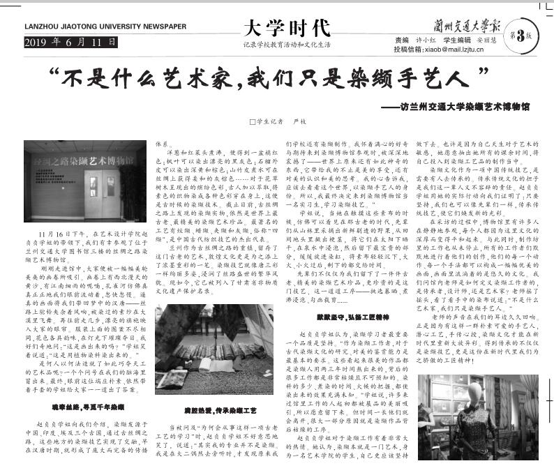 【兰州交通大学报】“不是什么艺术家,我们只是染缬手艺人”——访兰州交通大学 染缬艺术博物馆