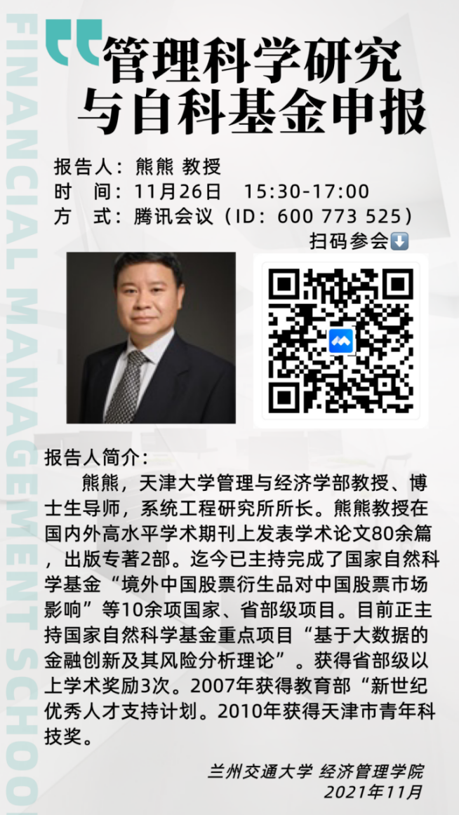 报告时间:2021年11月26日(星期五)15:30-17:00