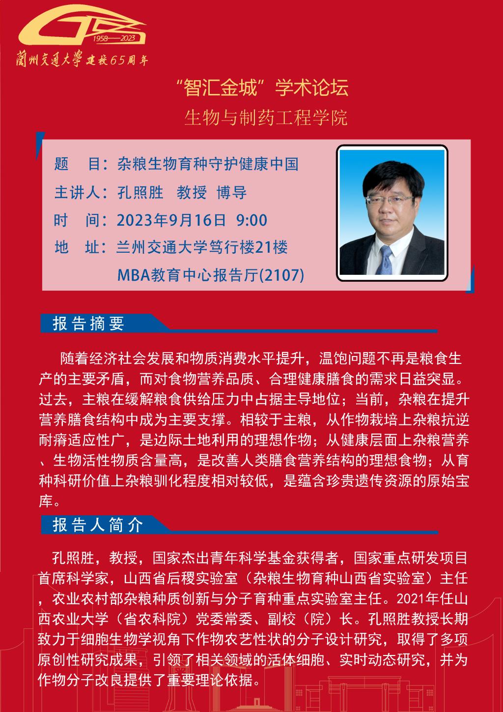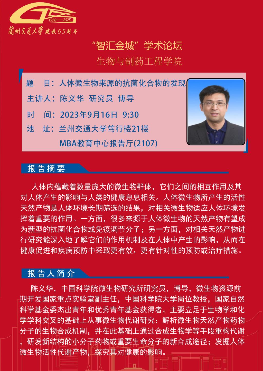 应生物与制药工程学院邀请,山西农业大学(省农科院)党委常委、副校(院)长、国家杰出青年科学基金获得者孔照胜教授,中国科学院微生物研究所陈义华研究员,天津大学宋浩教授,将为全校师生作专题报告。报告详情见海报。欢迎全校师生参加报告会。