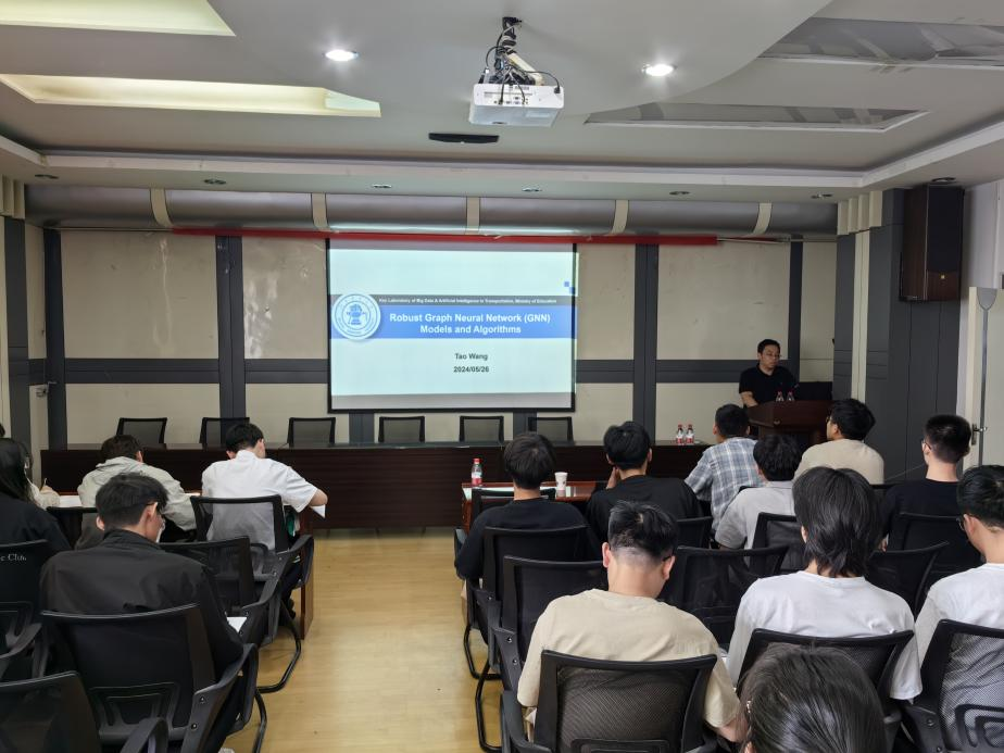 王涛以“鲁棒图神经网络模型与算法”为题,围绕图神经网络的数据增强、推理泛化和学习框架等内容,针对当前图数据分析领域呈现出数据规模与类型日益增长、数据质量难以保证、推理任务更加复杂等特性,介绍在构建高鲁棒的图神经网络和算法的部分研究成果。