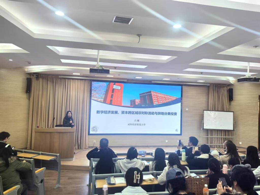 为深入探究数字经济发展对我国资本流动与区域经济格局的影响,11月1日,经济管理学院举办“天佑学术大讲堂”活动,特邀对外经济贸易大学国际贸易学院吕越教授作专题报告。吕越教授以《数字经济发展、资本跨区域非对称流动与异地分类投资》为题,系统阐释了数字化转型背景下企业资本跨区域布局的新特征与内在机理。校党委常委、副校长朱廷珺出席报告会,经济管理学院负责人、专业教师、研究生、本科生一百余人参加了此次学术活动。