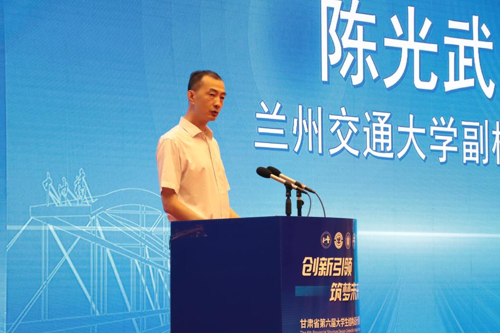 陈光武代表兰州交通大学对竞赛成功举办表示热烈祝贺,对付出辛劳的评委专家、参赛师生,以及为竞赛顺利进行提供服务保障的工作人员和志愿者同学们表示衷心的感谢。他表示,本次竞赛,既是省内高校从事土木工程人才培养院系管理者之间交流的平台,也是我省优秀土木学子代表切磋学习成果、展现风采的舞台,为进一步推进我省高校的实践教育教学改革,强化大学生的创新意识、团队协作精神和工程实践能力,进而提高人才培养质量起到了积极的引领和推动作用。参赛成绩固然重要,但竞赛的意义更在于过程。他希望同学们以沉着冷静、诚信担当的良好心态,在最富有创造力和激情的年龄,积极主动地参加各类学科竞赛和实践创新活动,珍惜机会,挑战自我,在快乐的学习和比拼中展现才华。