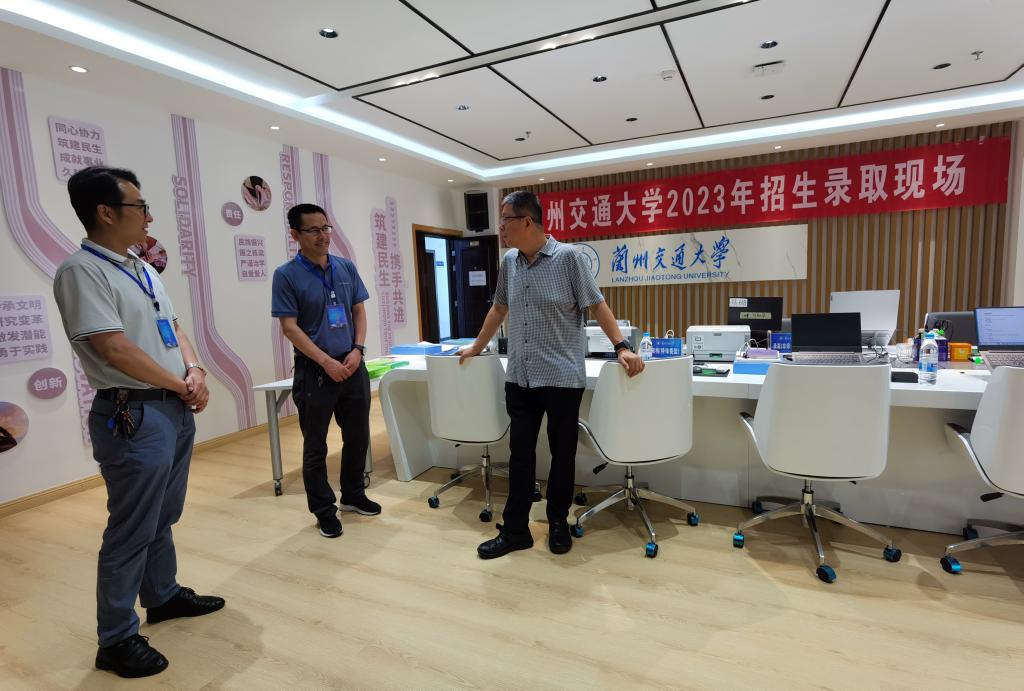 7月24日,学校纪委书记范爱国来到我校招生录取现场,检查指导2023年招生录取工作,看望慰问招生录取一线工作人员。