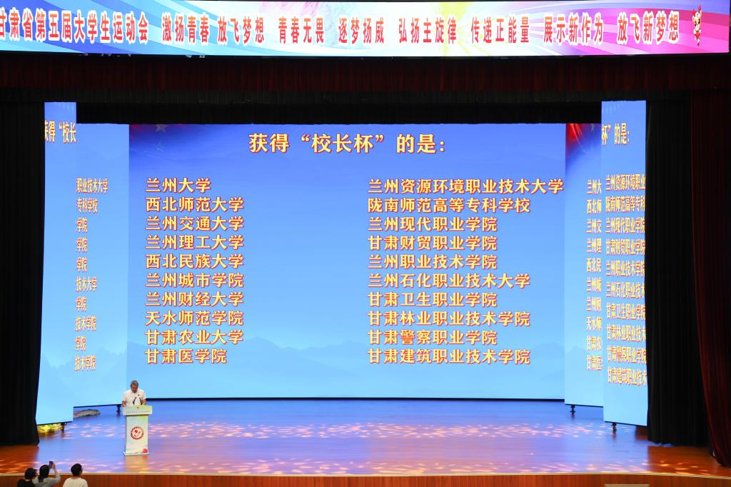 7月29日,历时15天的甘肃省第五届大学生运动会在甘肃警察职业学院落下帷幕。来自各参赛高校代表团的领导及成员,和部分代表团领队、教练员及运动员参加了闭幕式。