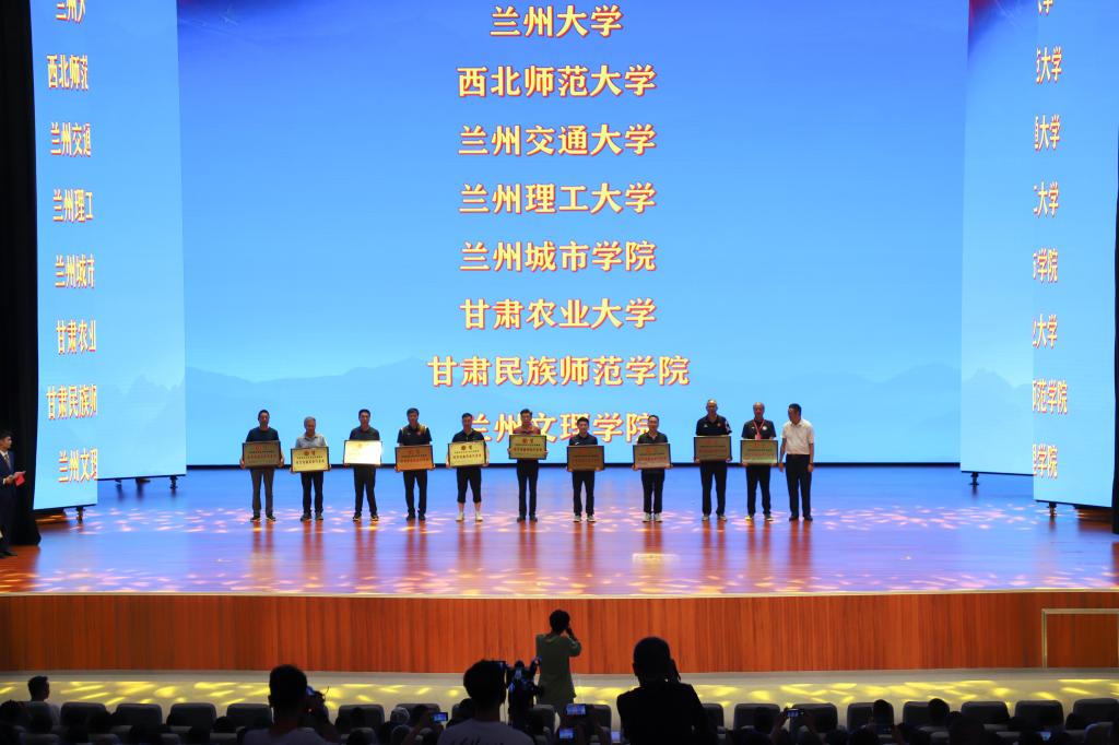 组委会秘书长、省教育副厅厅长邓伟宣布甘肃省第六届大学生运动会承办单位。大会举行了大运会会旗交接仪式。甘肃省第六届大学生运动会承办单位甘肃农业大学党委常委、副校长滚双宝接过大运会会旗。