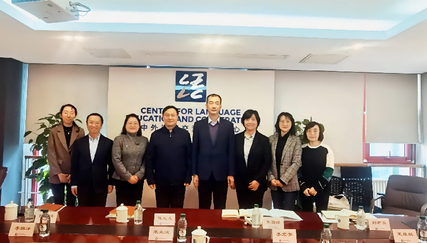 教育部中外语言交流合作中心党委副书记宋永波及汉考国际等相关处室负责人热情会见我校访问团。双方就孔子学院师资选派与管理培训、国际中文教师奖学金、国际中文教育实践与研究基地、HSK考试、国际中文教师证书、教材及文化交流活动资源等事项进行了会谈。