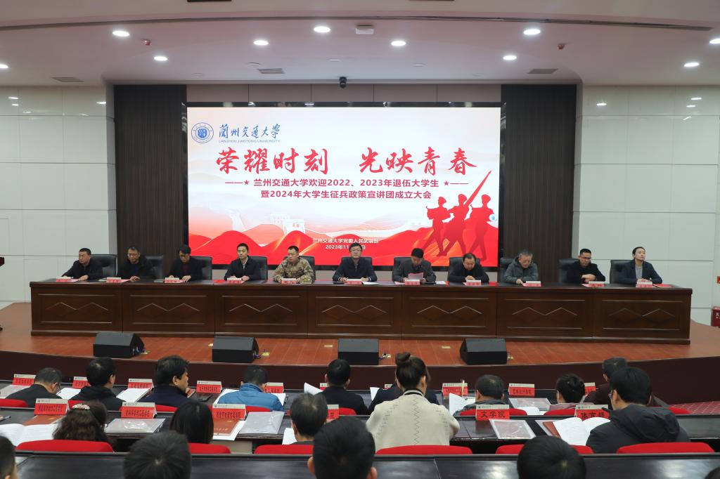 11月30日下午,我校欢迎2022—2023年退伍大学生暨2024年征兵政策宣讲团成立大会在尚德楼三楼大报告厅举行。校党委副书记贡力出席并讲话,安宁区武装部相关负责同志出席大会。大会由学生工作(部)处、党委人民武装部负责人主持。