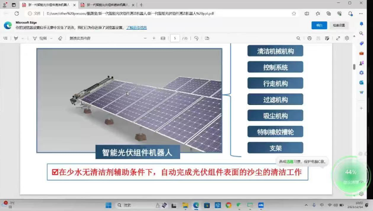 会上,电信学院沈瑜发布了“面向多场景的无人化智能监测系统”项目,并介绍了该项目的市场竞争优势、运用场景、成果转化实施等情况;新能源学院甄箫斐发布了“新一代智能光伏组件清洁机器人”项目,并介绍了该项目的产品特点、技术优势等情况。我校展示的科技成果吸引了相关参会企业的关注,有望开展深入合作。