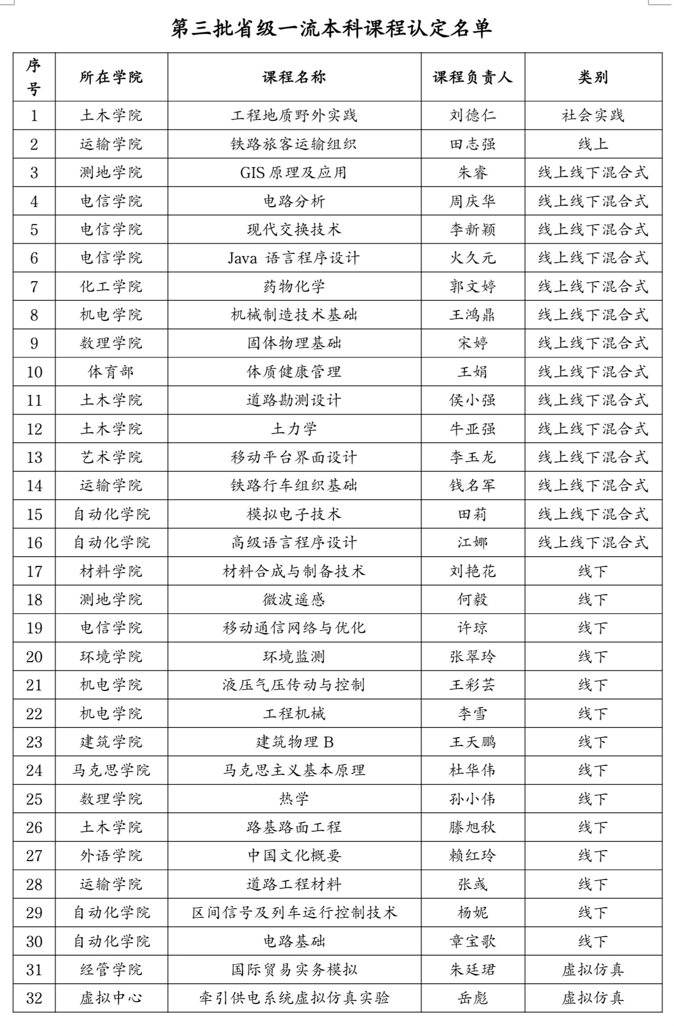 我校32门课程被认定为省级一流本科课程