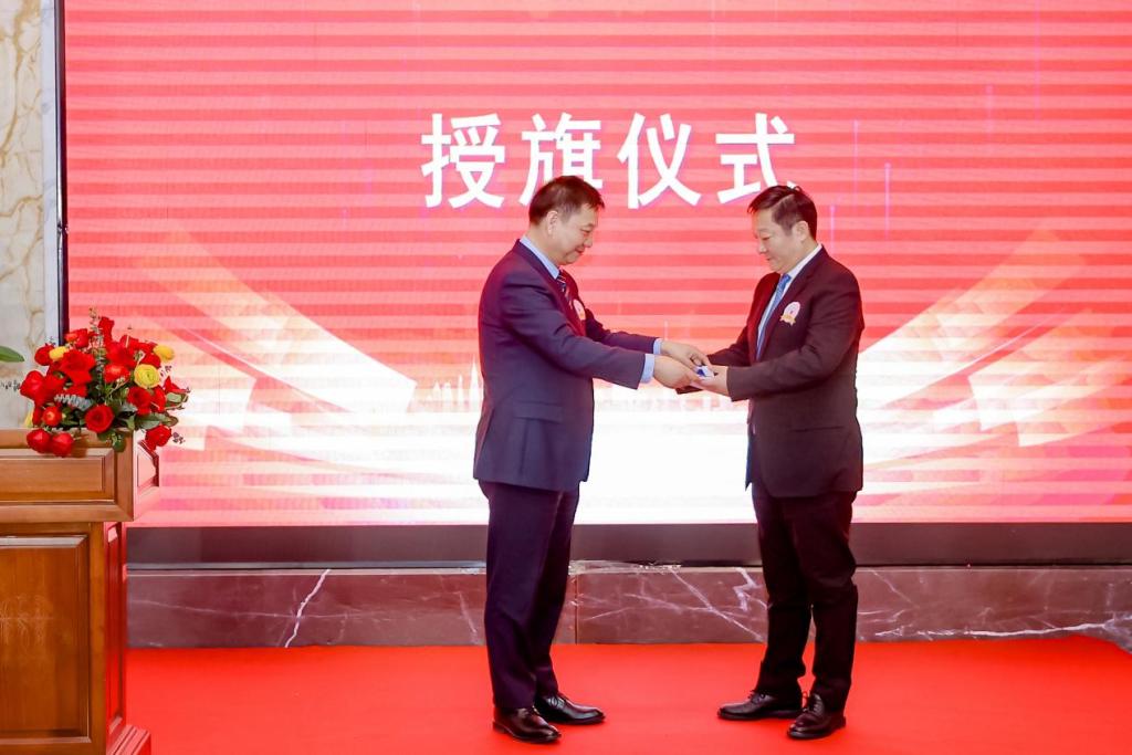 大会伊始,全场起立、奏唱国歌。学校校友会(基金会)办公室负责人宣读了《关于兰州交通大学北京校友MBA分会换届的批复》。朱廷珺代表学校对此次MBA分会换届大会的胜利召开表示热烈祝贺,向长期以来关心、支持母校各项事业发展的京津冀校友表示衷心的感谢。朱廷珺向与会校友简要介绍了学校近年来取得的成绩,以及学校制定的“1152”发展战略目标,希望校友秉承“服务校友、服务母校、服务社会”的宗旨,成为学校建设祖国、服务行业的重要支撑,助力学校创新发展、促进学校突破前行。朱廷珺为新一届MBA分会授会旗、颁发委任聘书。