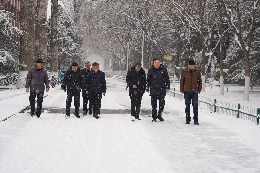 霍海峰一行先后走访了第一教学楼、南苑浴室施工现场、清真餐厅、环卫中心、电工班、家属区服务中心、北校区锅炉房、教工食堂,就施工现场安全生产,校内用电、用水、用气安全、食堂和教学楼消防安全和假期后勤保障工作开展情况进行了走访检查。