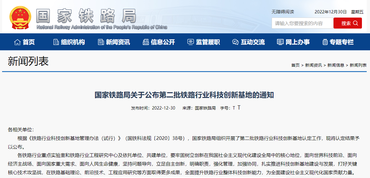 2023.1.4兰州交通大学7项成果入选国家铁路局铁路重大科技创新成果库