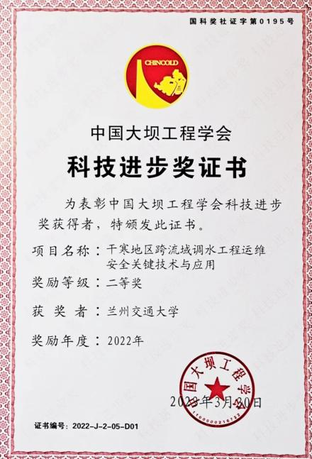 2023.5.4我校成果获2022年度中国大坝工程学会科技进步奖