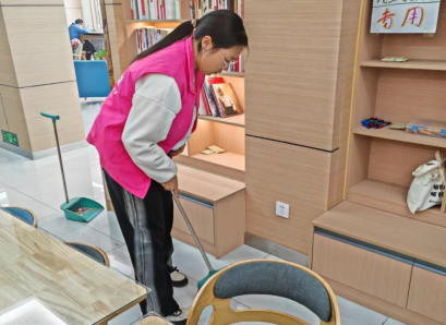 交通运输学院李文静同学走进二七九社区儿童服务站,主要为孩子们提供结构化的课程及参与式活动等高质量陪伴服务,参与搭建社区儿童服务平台,促进孩子们身心健康发展。环境与市政工程学院冒涵宇同学走进社区图书角,帮助维护图书角的环境卫生、图书排列,真正在社会实践中磨炼品格、增长才干、实现全面发展。