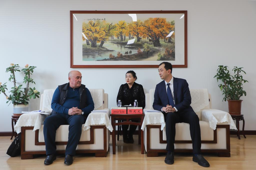 会谈中,双方代表就各自学校的发展状况、优势学科及国际合作经验进行了分享与交流。陈光武介绍了兰州交通大学在交通运输、土木工程、机电、自动化等领域的研究成果,并表达了与乌尔根奇国立大学开展深层次合作的愿望。乌尔根奇国立大学代表团团长居玛·洛兹莫夫对兰州交通大学的学术水平给予了高度评价,并期望双方能在更多领域展开合作。在会谈取得积极成果的基础上,双方就师生交换、联合实验室建设、学术会议等具体合作事宜进行了详细讨论。双方一致同意加强师生间的交流与合作,推动两校在生物技术、微生物、电子商务、物流管理、车辆工程等领域的科研合作,举办相关领域的学术会议,共同培养具有国际视野的优秀人才。