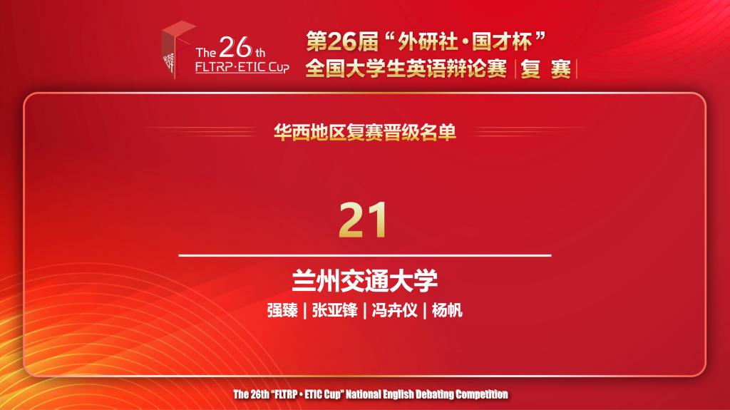 4月20至21日,第26届“外研社·国才杯”全国大学生英语辩论赛华西地区复赛在互联网云端落下帷幕。由外国语学院强臻、张亚锋老师带队,葡萄牙语2201班冯卉仪和西班牙语2201班杨帆同学组成的代表队获得华西区复赛一等奖,以优异成绩成功晋级全国总决赛。