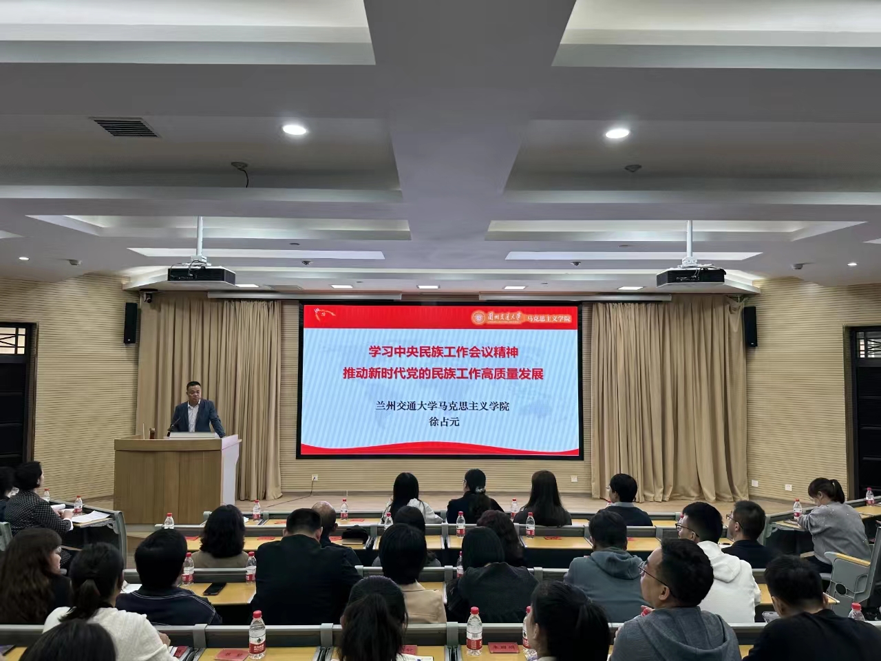 启动仪式后,兰州交通大学马克思主义学院副教授徐占元应邀作了题为“学习中央民族会议精神 推动新时代党的民族工作高质量发展”的专题报告。徐占元从会议背景、会议内容、会议要求三个方面详细讲解了中央统战工作会议精神,从重要意义、深刻内涵、基本任务、政治保证四个方面讲解了如何铸牢中华民族共同体意识。
