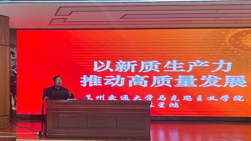 为深入学习习近平总书记关于新质生产力的重要论述,不断提升康乐县党员干部的理论水平和业务能力,推动康乐县经济高质量发展,4月28日,应康乐县委宣传部邀请,学校选派马克思主义学院教授、硕士研究生导师苏星鸿赴康乐县进行宣讲。苏教授以《以新质生产力推动高质量发展》为题,在康乐县委理论学习中心组(扩大)会议上为康乐县县级干部、各乡镇党委书记、乡镇长及相关单位负责人共计160余名干部作了专题讲座。