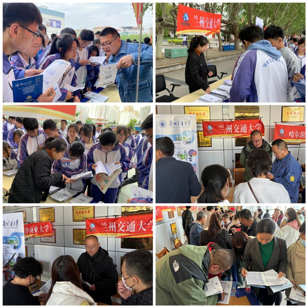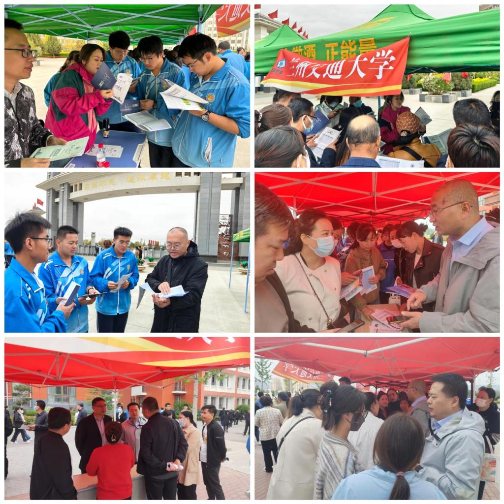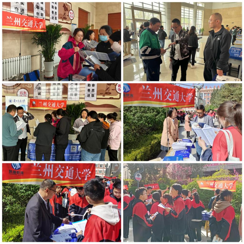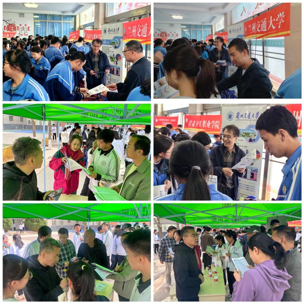 4月25日至30日,由招生就业处牵头组织,经济管理学院、测绘与地理信息学院、环境与市政工程学院、交通运输学院、外国语学院、文学院、新能源与动力工程学院、数理学院、机电工程学院、生物与制药工程学院、材料科学与工程学院等11个学院15名老师组成的招生宣传小组,分东西两线赴兰州、临夏、定西、甘谷、平凉、天水、武威、金昌、张掖、酒泉、嘉峪关等地开展本专科线下招生宣传。