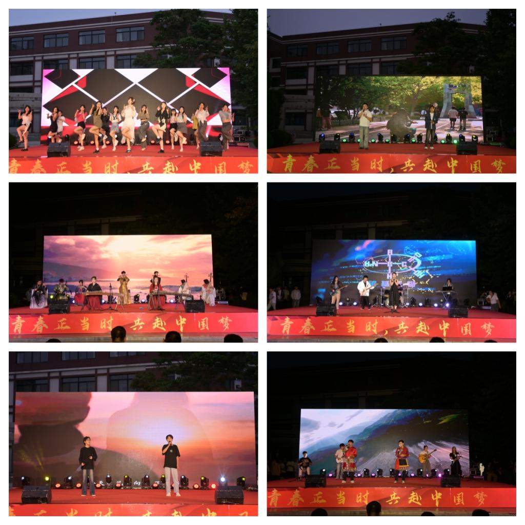 晚会在舞蹈《青春的颜色》拉开了序幕,充满热情的节奏,点燃了全场的气氛。《做勇敢的大人吧》《春风十里》歌曲中蕴含了温暖与柔情,仿佛是对毕业生们青春岁月的温柔告别,原创歌曲《下一段旅程》唱出了毕业生们即将面对人生新旅程的复杂心情,既有对校园生活的不舍,更有对未来的无畏勇气。小品《手机综合症》通过幽默诙谐的表演,让大家意识到在这个信息爆炸的时代,我们不能被手机所束缚,不能让虚拟的世界冲淡了真实的情感连接。《吹梦到西洲》《山风一样自由》《如果当时》三首歌曲成为了毕业生们青春的配乐,陪伴他们迈向人生新征程。傣族舞《孔雀飞》和藏舞《心愿》以其精彩绝伦的表演,成为晚会的亮点之一,它们不仅展现了中华民族丰富多彩的舞蹈文化,更让毕业生们在即将告别校园之际,感受到了不同民族艺术的魅力与力量。民乐合奏《濯海令》《九州同》磅礴大气,尽显华夏气质,乐队歌曲《喜欢你》《阳光照进回忆里》点燃青春激情,将晚会的气氛再次推向高潮。晚会在大合唱《夜空中最亮的星》和《我和我的祖国》中落下帷幕,台上台下回声嘹亮,唱响整场晚会的最强音。