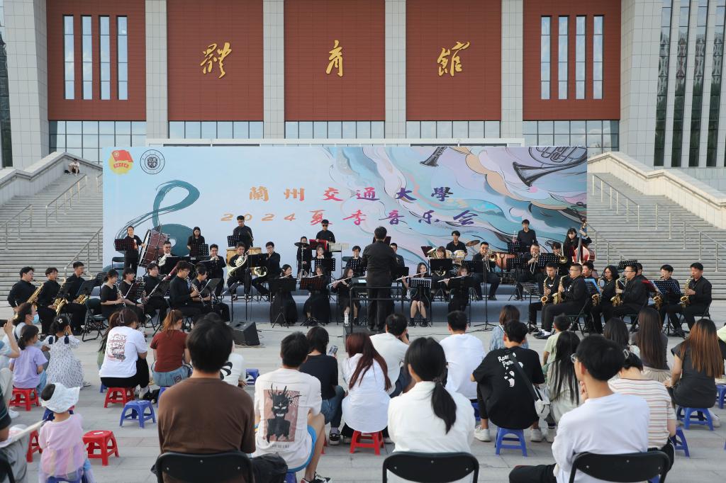6月14日,兰州交通大学大学生管乐乐团在北校区新体育馆前时代广场举办了兰州交通大学2024夏季音乐会。众多热爱音乐的在校生、毕业生、教职工和家属300余人现场观看演出。