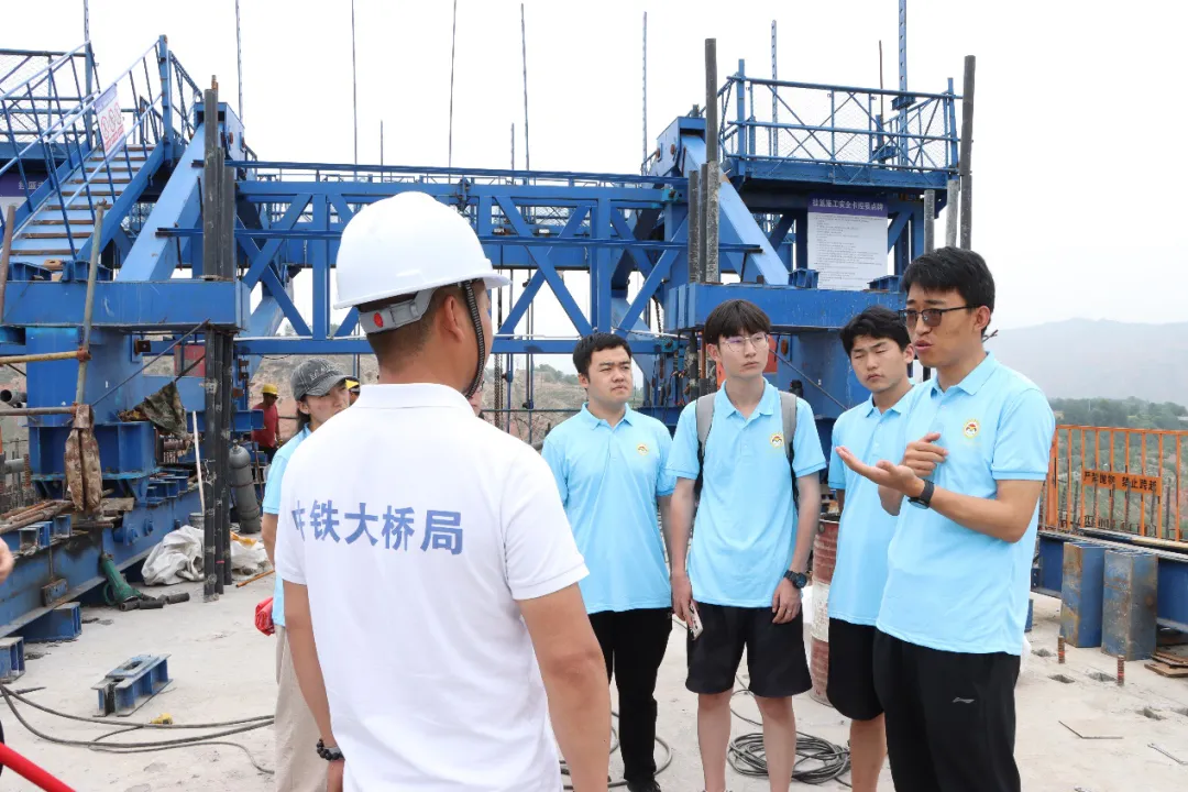 依托专业优势 履行社会责任。在前往积石山的途中,当地应急救援部门工作人员告诉同学们,通畅的交通在积石山抗震救灾中发挥了至关重要的作用,为救灾物资和人员的快速运输提供了有力保障,为抗震救灾工作做出了积极贡献。目前在建的兰合铁路是联结兰州市和临夏回族自治州、甘南藏族自治州的一条重要铁路线路,也是中国“八纵八横”高速铁路网主通道之一兰(西)广通道的组成部分。团队在专业指导老师及社会实践指导老师的带领下赴临夏州中国中铁大桥局兰合铁路LHTJ4标项目经理部进行了参观学习。现场,王力老师就连续梁桥、连续刚构桥等桥梁结构的受力特点、预应力效应、挂篮施工等专业方面知识为实践队成员进行了全面的讲解。随后,在兰州交通大学土木工程学院2022届道桥专业校友,中铁大桥局兰合铁路LHTJ4标项目经理部柳亚龙的带领下,团队成员参观了预制桥梁、运梁车等材料设施。柳亚龙校友详细讲解了各个参观地点的施工工艺和重难点,让学生们走出课本,对施工现场作业有了更加直观的感受。通过本次项目部的实习实践,同学们学习到了先张法、后张法等相关的专业知识,使得团队成员将课堂上学到的理论知识与实际情况相结合,深化对建筑结构、材料性能、抗震设计等专业知识的理解,提升自己的实践能力和解决问题能力。