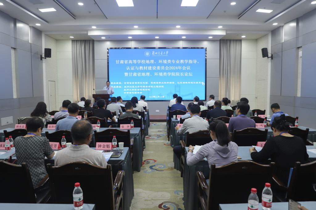 8月28日,由甘肃省高等学校地理、环境类专业教学指导、认证与教材建设委员会主办,兰州交通大学环境与市政工程学院、兰州大学资源环境学院、甘肃省地理学会承办的“甘肃省高等学校地理、环境类专业教学指导、认证与教材建设委员会2024年会议暨甘肃省地理、环境类学院院长论坛”在兰州交通大学召开,来自兰州大学、西北师范大学、兰州交通大学、兰州理工大学、甘肃农业大学、西北民族大学、陇东学院、兰州城市学院、天水师范学院等高校的40余名专家、学者参加会议。兰州交通大学党委常委、副校长苏程,甘肃省教育厅高教处处长张洪伟,教育部高等学校环境科学与工程类专业教学指导委员会秘书长、四川大学建筑与环境学院副院长刘敏,甘肃省高等学校地理、环境类专业教学指导、认证与教材建设委员会副主任委员、兰州交通大学研究生院常务副院长杨军、教育部高等学校地理科学类专业教学指导委员会原常务副秘书长、甘肃省地理学会理事长、兰州大学资源环境学院院长李育及环境学院班子成员出席开幕式。会议由兰州交通大学环境与市政工程学院院长主持。