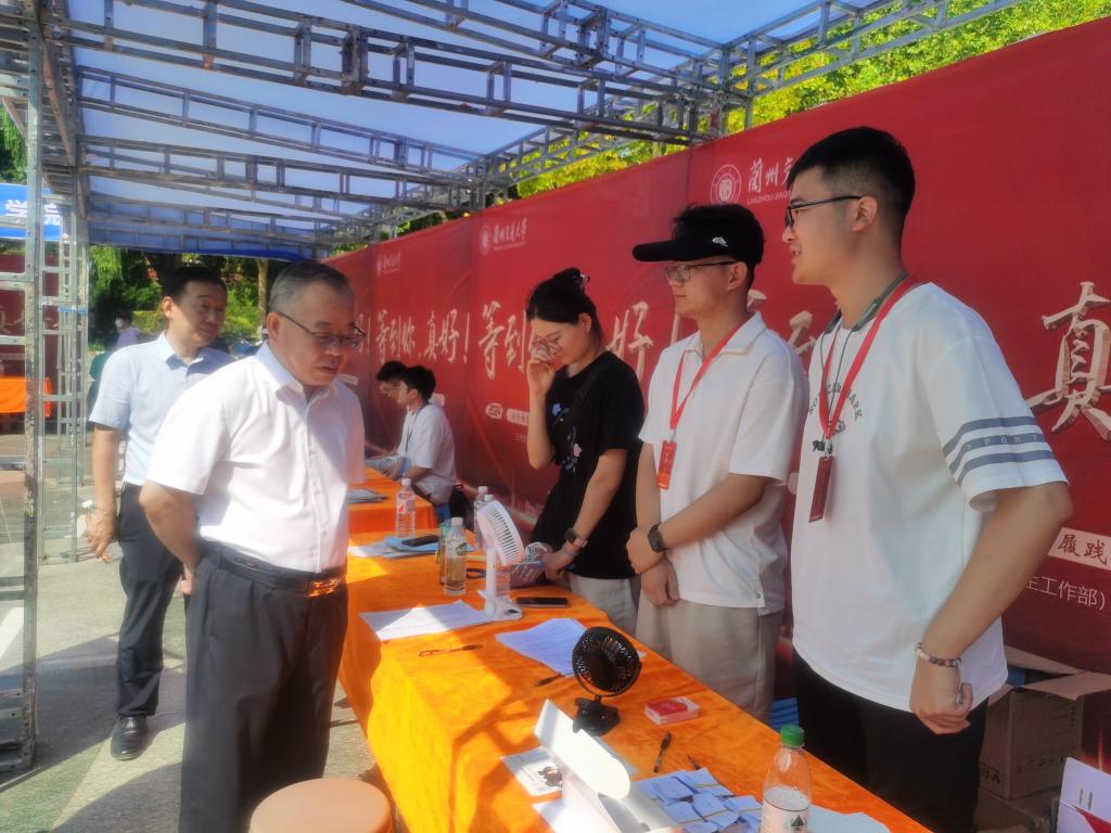 迎新期间,校党委常委、副校长朱廷珺,党委副书记王爱平,党委常委、副校长苏程、陈光武、闫浩文先后前往唐臣广场,看望2024级研究生新生。