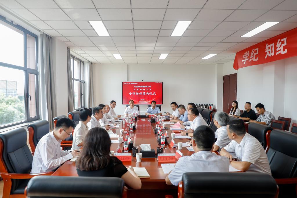 9月2日,中铁建设集团有限公司来我校签订校企合作协议。校党委常委、副校长朱廷珺,中铁建设集团有限公司党委委员、副总经理郝长江出席会议并致辞,集团人力资源部(党委干部部)部长文华,西北公司党委书记、工会主席董翠峰,机电公司执行董事、党委书记谭学彪,人力资源部(党委干部部)副部长朱川,西北公司人力资源部经理王超参加会议,校党委常委、副校长陈喜春主持签约仪式。