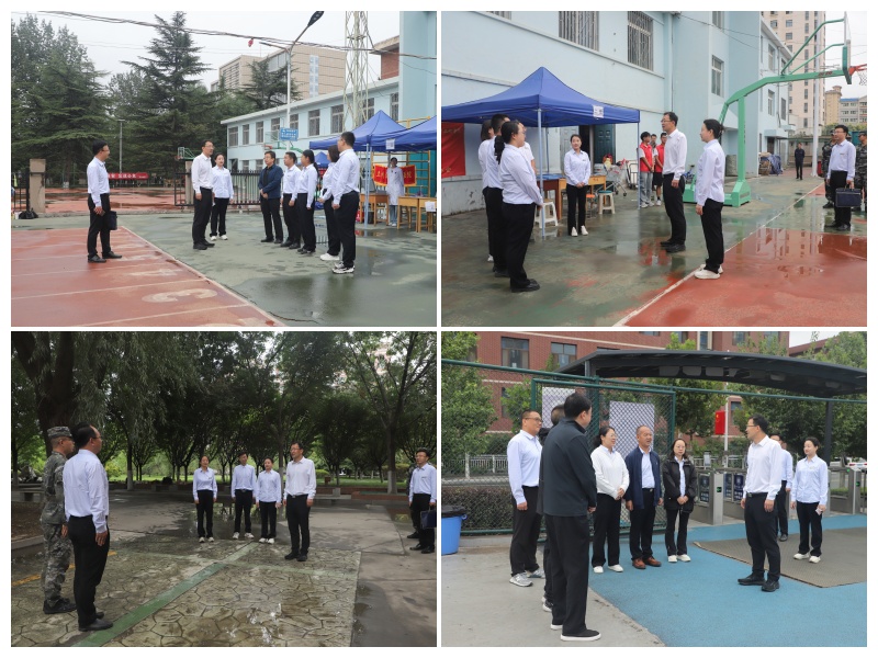 9月4日上午,副校长苏程在学生工作(部)处、党委人民武装部相关负责人的陪同下,赴军训训练场地检查指导军训工作,并看望承训教官、带队教师、医务工作人员和参训学生。