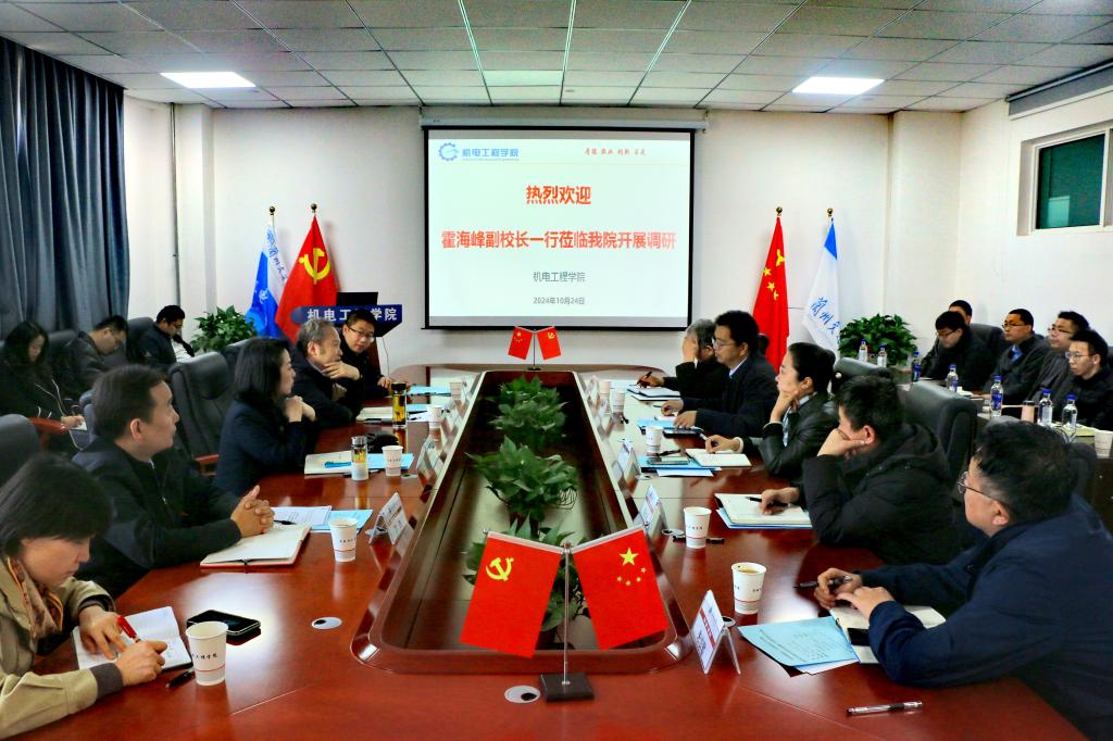 10月24日上午,副校长霍海峰带队深入机电工程学院开展调研工作,党委组织部、人事处、改革发展处负责人陪同调研。学院领导班子成员、各系室主任和教师代表参加了座谈会。座谈会由学院院长李宗刚主持。