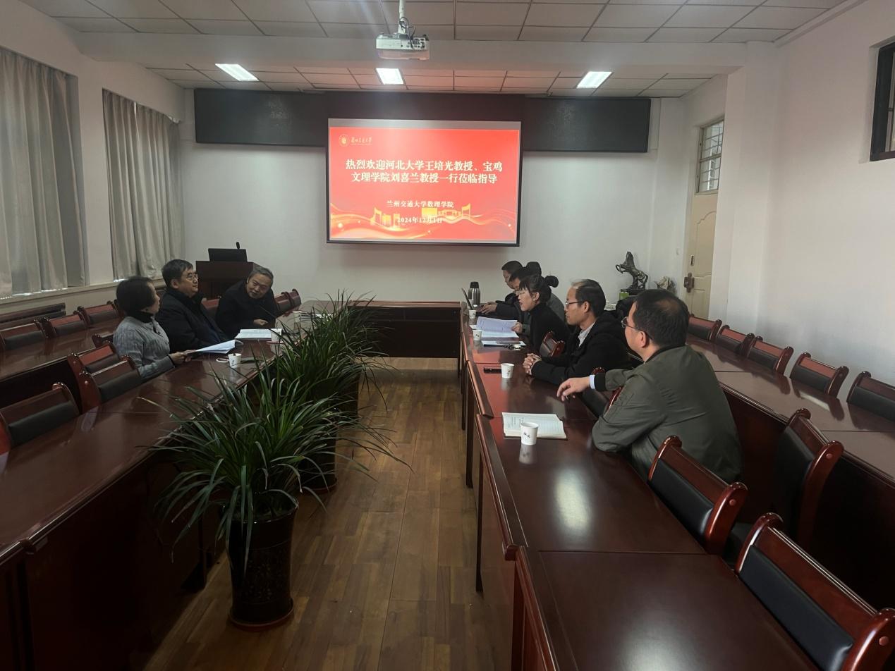12月1日上午,教育部高等学校数学类专业教学指导委员会委员、教育部高等教育评估专家、河北大学数学与信息科学学院王培光教授,教育部高等学校数学类专业教学指导委员会委员、教育部高等教育评估专家、宝鸡文理学院数学与信息科学学院刘喜兰教授应邀来到数理学院开展本科教育教学审核评估和专业建设工作座谈会。会议由数理学院相关负责人主持,兰州交通大学副校长霍海峰与数学系骨干教师参加了会议。