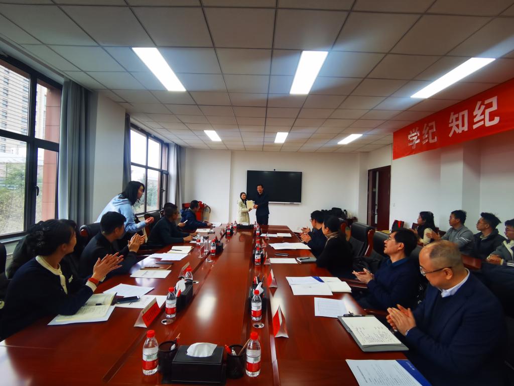 会上,新入职辅导员依次进行了自我介绍,经济管理学院辅导员林育秀发言。