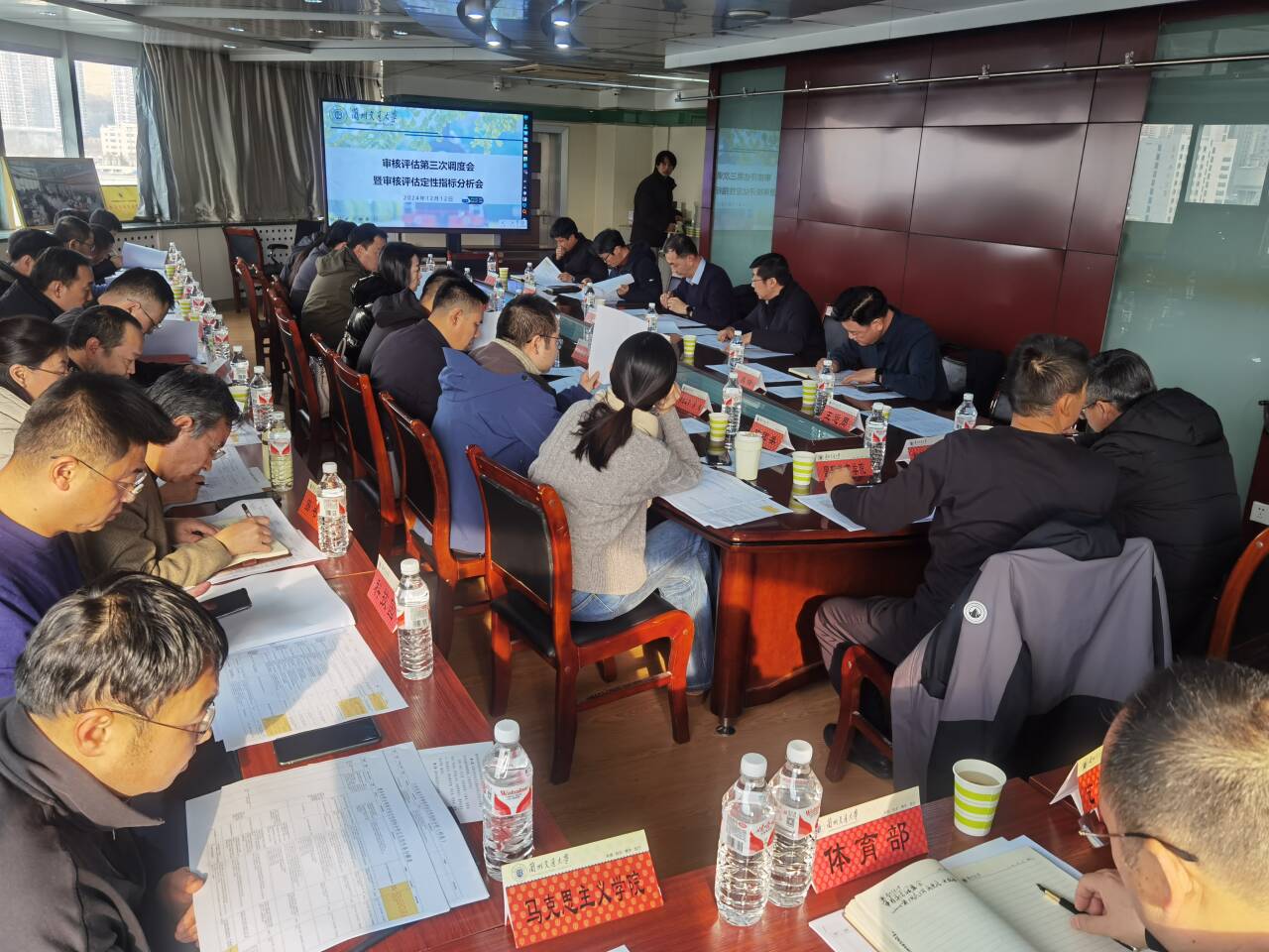 为了全面梳理审核评估工作进展,精准聚焦问题,持续推进审核评估各项工作高质量有序开展,12月12日,学校在尚德楼10楼会议室召开本科教育教学审核评估第三次调度会,对审核评估定性指标进行研讨。审核评估定性指标自查自建工作牵头单位和参与单位参加了会议。会议由校党委常委、副校长、审核评估办公室主任陈光武主持。
