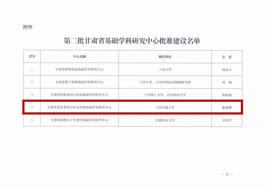 近日,甘肃省科学技术厅公布了批准建设第二批甘肃省基础学科研究中心名单,我校“甘肃省复杂系统分析及控制基础学科研究中心”成功入选。