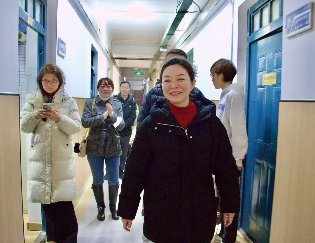 随后,王珺前往南苑2号公寓女生宿舍,深入了解学生的住宿情况。她实地考察了公寓的配套设施,并与学生进行了深入的交流,听取了她们对公寓环境、学校供暖等方面的意见和建议。在交流过程中,王珺特别提醒同学们要加强安全意识,注意宿舍用电、防火等安全问题,共同营造和谐、安全的住宿环境。同时,她还鼓励同学们要搞好宿舍文化建设,珍惜彼此之间的友谊,相互支持、共同进步。